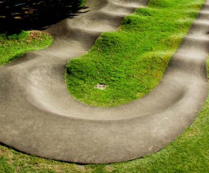 A series of small rounded humps that riders can roll over or pump to build and maintain speed without pedalling.